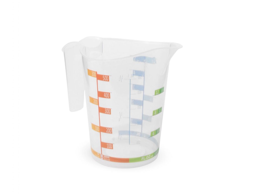 - Plastová odměrka o objemu 500 ml je vhodná pro odměřování sypkých i tekutých potravin díky přehledným stupnicím.