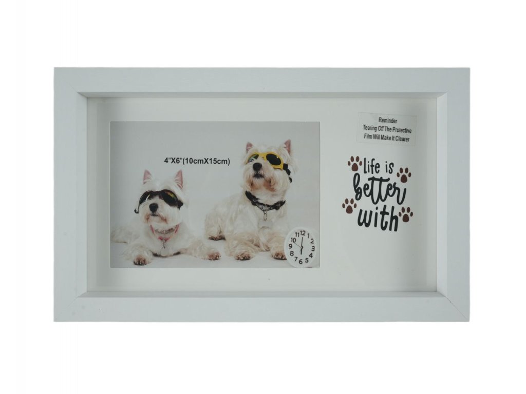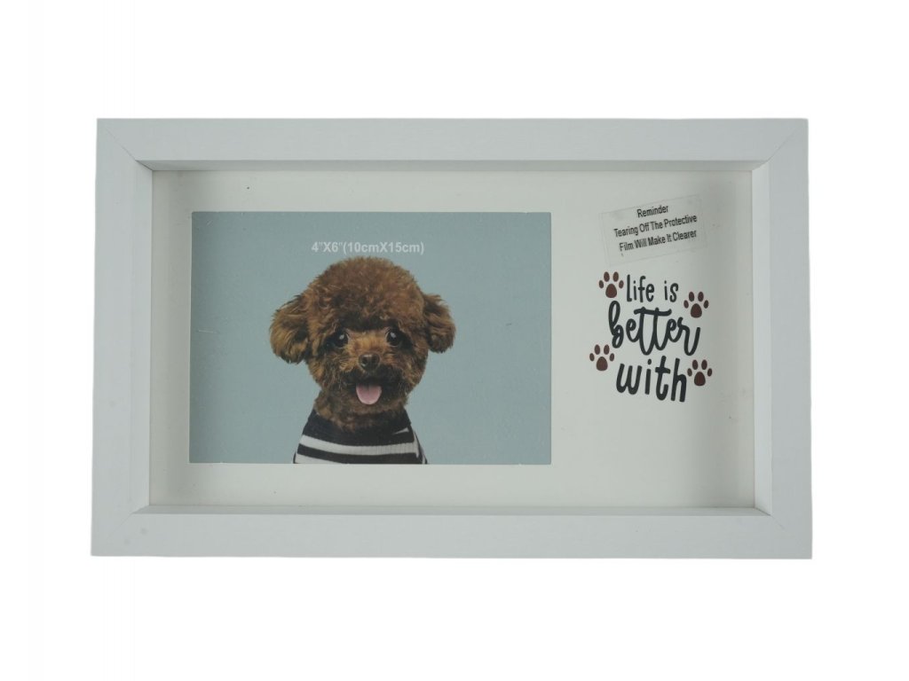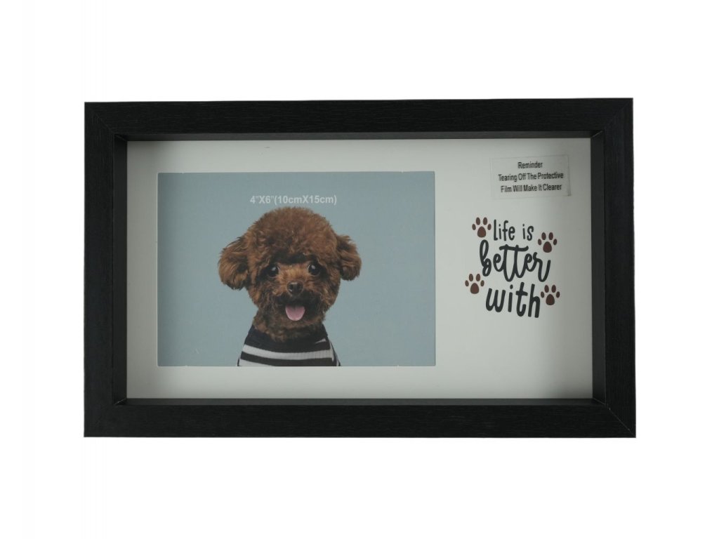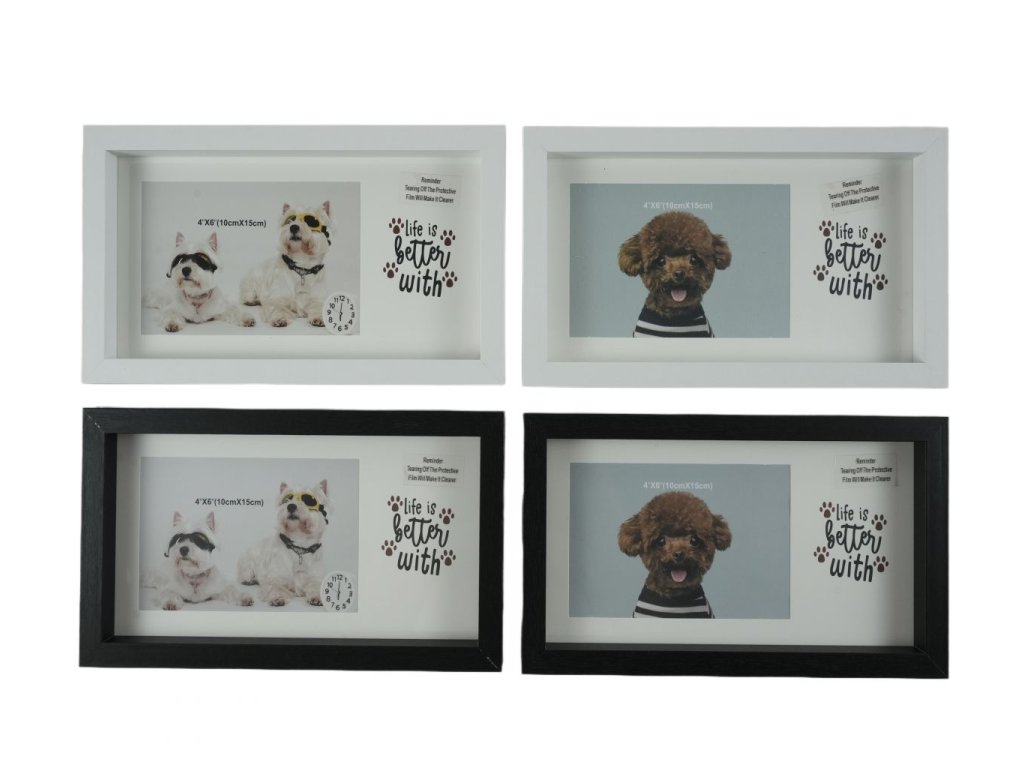 KHUNG ẢNH 10*15CM MDF MẶT MIKA HÌNH CON CHÓ 2 MÀU TR+ĐEN LẪN