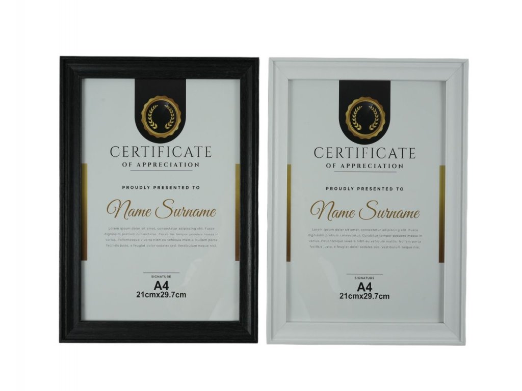 KHUNG ẢNH A4 21*29.7CM MDF MẶT KÍNH 1.8MM 2 MÀU TR 70%+ĐEN 30% L